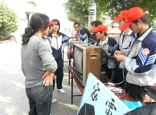 家电维修小分队受到村民欢迎 清理塘河河畔垃圾、慰问老党员、“代理妈妈”为留守儿童免费辅导作业、义务帮村民维修家电……3月12日下午,有“魅力乡村”之称——茶山街道山根村里到处是一群带着“小红帽”青年志愿者。我院100多名青年志愿者,利用周三下午业余时间来到山根村开展“学雷锋”活动,这也是我院日前开展的“青年志愿者进万家”活动的系列活动之一。