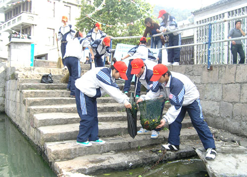 此次青年志愿者队伍共分成了四个小分队:保卫“母亲河”小分队、尊老爱幼服务队、专业免费服务队、新农村宣传小分队。山根河是温瑞塘河流经之地,志愿者们在河畔挂起了《保护母亲河》宣传画,并向过往的村民发放倡议书,倡议人人参与塘河治理活动,拒绝乱丢乱排等不文明行为,让母亲河清水常流、瓯越大地绿意常在。青年志愿者还在河畔两岸开展清理垃圾、植绿活动等活动。“温瑞塘河是温州的母亲河,保护母亲河是我们每个公民义不容辞的责任。只要人人都能多一点爱护,少一点破坏,塘河就会变美。也就是抱着拯救母亲河的愿望,我这次加入了青年志愿者活动。”一位青年志愿者说出自己的心里话。