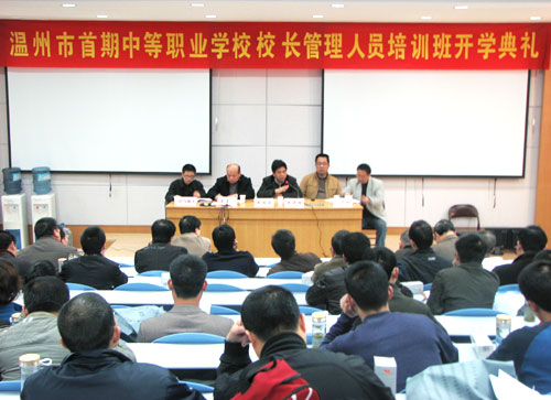 据悉,本次培训首次采用理论授课和相结合的形式。培训班内容有中等职业学校课程改革与发展,中等职业学校师资队伍建设、专业建设,中等职业学校多元化服务与职业指导,劳动力市场与就业、职业道德与法规,现代职业院校的财务管理,领导艺术等。温州大学、温州职业技术学院、温州市委党校、温州市教育局的多名知名教授、职业教育专家担任了培训部分相关课程的授课任务。所有参训人员还将实地考察我院集实训、生产、教学于一体,颇具规模和特色的实训基地和温州华侨中学的实训基地,走访温州各大知名企业、了解企业人才需求情况。培训为期半个月。通过培训使学员进一步了解职业教育基本特点、树立现代职业教育的先进理念、明确我国职业教育的培养目标和发展方向。