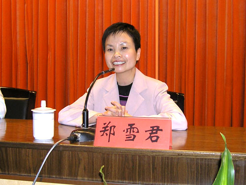 温州晚报总编助理、十七大党代表——郑雪君同志 4月30日,我院特邀请了温州晚报总编助理郑雪君在学术报告厅举行了职业道德教育报告会。学院500多名教职员工参加了报告会。报告会由学院党委副书记倪集崇主持。