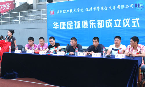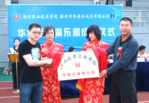 新成立的足球俱乐部 我院自办学以来,在各专业上的校企合作例子举不胜举,校企合作的类型也是多种多样。近年来,我院推行工学结合,校企合作项目更是在校园中遍地开花,形成了独特的校园特色。而日前,我院公共教学部也把校企合作理念引入到了体育教学中,与温州市华康合成革有限公司合作成立了华康足球俱乐部。该俱乐部成立之后,企业将每年投入资金赞助我院足球俱乐部的发展,聘请专业指导老师不定期地指导学生,营造良好足球运动氛围;而学校也将按要求将足球俱乐部以企业名称命名,在教学、训练、比赛中为企业积极做宣传。双方互惠互利,同进共赢,这也是对体育课程创新性的常识。青年教师黄淼还将该模式进行专门研究,申报了学院课题。