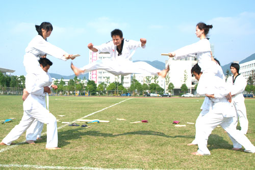 5月10日,我院在足球场上隆重举行了华康足球俱乐部成立仪式,并由公共教学部主任赵岳峰与华康公司总经理王坚繁签订了合作协议。在成立仪式上,校园“足球宝贝“用火辣的舞蹈来为足球队助阵,跆拳道继篮球赛开幕式后再次出场亮相,为观众表演了对抗实战演练。
