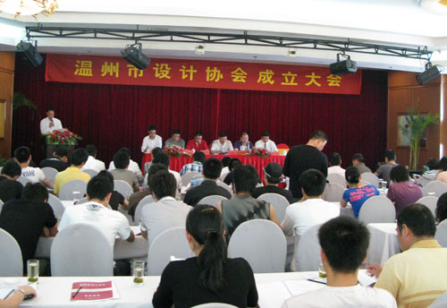 温州市设计协会成立大会合影 个人形象设计、服装设计、鞋样设计、装潢设计……6月2日,温州市各行各业的设计师代表们齐聚一堂,组建成立了温州市设计协会。我院轻工系田正副教授担任会长。
