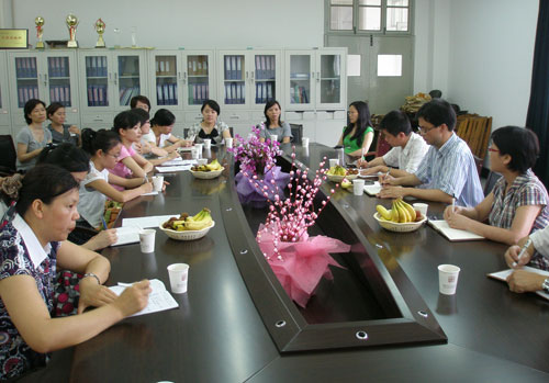 在教研活动中,院长丁金昌认真听取了教师们讲述自己的教学心得、今后专业英语的定位。多位英语教师还向领导提出“创造条件让他们学习第二专业”的要求。丁金昌院长也希望英语教师在转型过程中能与自己个人的知识、兴趣结合起来,如有喜欢服装设计的英语教师就可以把服装专业英语定位为自己今后的一个学习方向。“我也希望能够辅修另外的专业,如进入会计专业的课堂学习会计知识,再结合自己的原先的英语基础,这样我们就更能胜任会计专业英语的教学,也就能成功实现自我转型,成为英语教学的‘多面手’。”一位青年教师在教研活动中谈出了自己的想法。教师们畅所欲言,提出了许多建议和意见。