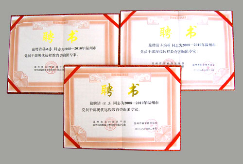 6月23日下午,温州市农村党员干部现代远程教育“百名专家咨询团”成立大会在新南亚大酒店七楼会议室举行,我院田正、谢婉容、刘海明等三位老师在现场接受聘书,被聘为温州市农村党员干部现代远程教育“百名专家咨询团”专家。专家咨询团有实用技术、基层党建、政策法规、经济管理、卫生保健、计算机应用、电脑网络等方面的专家组成,共115名。