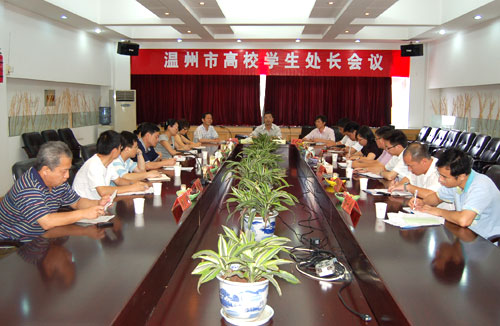 会议讨论了学生管理工作的亮点和难点,对近阶段学生工作做了总结。教育局高教处就下半年及暑期的工作思路和工作重点做出了部署。会议要求各在温高校要切实加强和改进大学生思想政治教育工作,维护校园稳定,开展学生心理健康教育,抓好校园文化建设,强化创业就业培训和知道,加强辅导员和班主任队伍的建设。市教育局副局长张志宏在会上指出,今年是奥运年,校园稳定与安全工作任务重,要十分注重教育、引导,掌握信息动态,排查隐患,处理要及时得体;在学生工作中要以人为本,加强心理健康教育,抓好学风和校园文化建设,关心学生就业;要继续加强思政队伍建设。