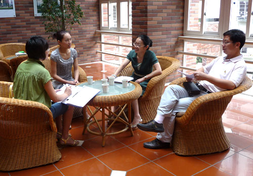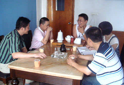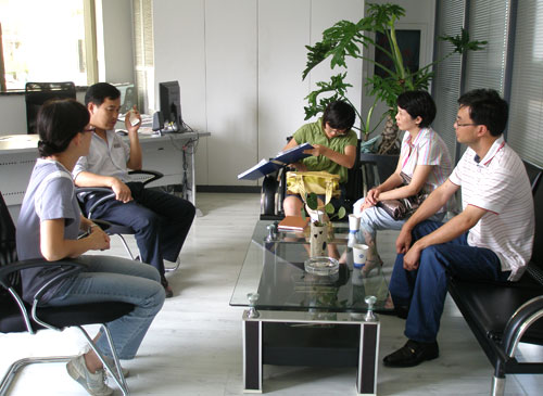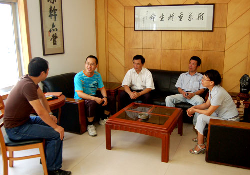 纪委书记何忠(图左一)看望下企业教师 教师下企业锻炼是我院师资队伍建设的重要举措之一。暑假期间,我院共有32名教师下企业当学徒,向行业专家学习,拓展视野,提高自己的专业操作水平。7月31月-8月1日,学院领导丁金昌、倪集崇、王向红、何忠等领导冒着酷暑分别带队到温州市区、瑞安、永嘉等地企业看望下企业锻炼的教师。学院领导每到一处都详细了解了下企业教师的工作环境、工作心态、学习状态等方面情况,还特意与企业负责人进行了交谈。