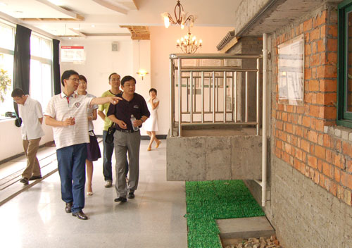 丁金昌院长向查教授介绍我院建工实训基地建设理念 8月9日上午,联合国教科文组织产学合作教席主持人、北京交通大学查建中教授莅临我院考察集“学做合一、生产与实训合一、教学与技术服务合一”的校内生产性实训基地。