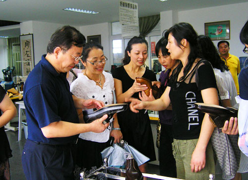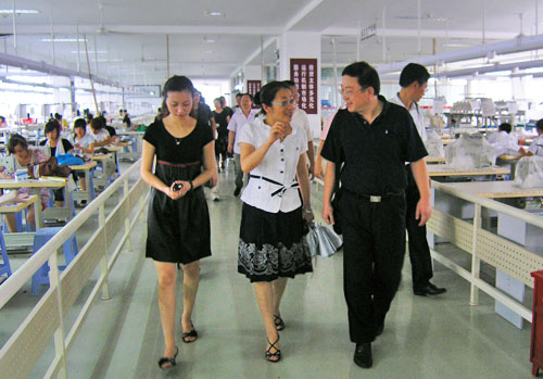 王向红副院长陪同客人参观制鞋研发中心