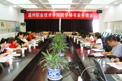 温州大学物理与电子信息学院办公室主任陈宏毅老师做经验交流 为了提高各系教学秘书的业务水平,加强教务处与各系部教学秘书之间的交流、学习。我院教务处于10月14日在行政楼三楼会议室组织召开了教学秘书业务培训会,教务相关科室和各系教学秘书参加培训会。会议由教务处副处长唐高平主持。