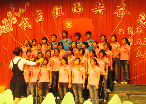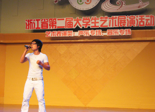 工商系选送的《青春舞曲》获得艺术表演类声乐组三等奖 在上周结束的浙江省第二届大学生艺术展演活动中,我院大学生艺术团胡泼同学的参赛歌曲《假如》在与二重唱、四重唱、表演唱等不同类型比赛组合的激烈竞争中,脱颖而出,获得艺术表演类声乐组二等奖,大学生艺术团舞蹈队选送的《袖舞轻风》、《春之灵》获得艺术表演类舞蹈组三等奖,工商系选送的大合唱《青春舞曲》获得艺术表演类声乐组三等奖。