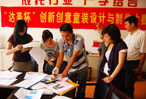 “学生的作品还是很有创意,我们不敢用的元素、颜色,他们都能很大胆用进去,很有创新意识。看学生作品,我们自己也收获了。” 温州达美服饰有限公司总经理谢世财说。10月22日,我院举行了创新创意童装设计大赛,特意邀请童装生产公司——温州达美服饰有限公司设计师、市场总监等来担任评委,他们用时尚、市场的理念对学生作品进行点评。而学生的一些创意点,让企业专家们却也大开眼界,不禁连连称赞学生思想活跃,可塑性强。一款女童牛仔裤把裙子和裤子有机结合起来,用桃色饰边、卡通口袋显得调皮、活泼,而设计者又巧妙地利用筋腰设计又充分考虑到6、7岁女童生长较快的特点,可以调整其长短。企业专家还根据市场流行趋势、时尚元素、设计风格给100多幅学生作品附上了修改意见。