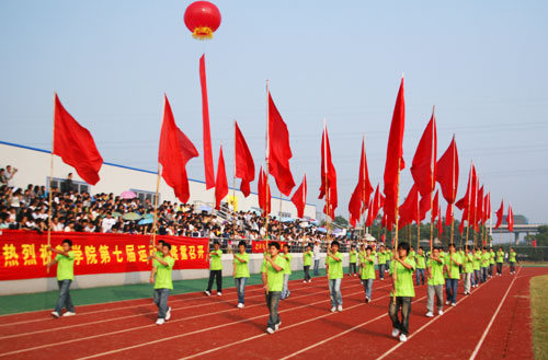 开幕式上,仪仗队、鲜花队、学院各体育运动会,各系运动员代表队组成10多个方阵,迈着整齐的步伐入场,个个朝气蓬勃、英姿勃发,展现了我院学生积极向上的精神风貌。入场时,各方阵还表演了精心准备的创意节目,体育场俨然成了各方阵展示才华的舞台,定格了一个个精彩的瞬间。