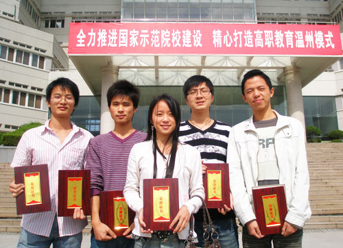 温州市首届计算机网络管理员职业技能大赛获奖的老师和学生 10月18日,“2008年温州市首届计算机网络管理员职业技能大赛”在我院圆满落下帷幕。来自全市10个县(市、区)、市直属有关单位和高职院校的102名网络管理高手们齐聚一起,PK网络管理技能,共同角逐3个参加省级职业技能大赛的参赛资格。