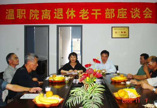 在离退休老干部座谈会上,老干部们认为学院近几年的发展很快,成绩显著,在社会上享有盛誉;认为学院领导对老干部工作很重视,离退休管理工作者对老干部服务工作很到位,大家很满意。老干部们对学院的建设发展十分关注,就学院发展和老干部工作提出了许多建设性的建议意见。许多老干部对全球金融危机给大学校园的影响给予了高度的关心,面对全球金融危机如何做好师生的思想教育、学生的就业心理指导,用他们多年对教育管理工作的经验提出了许多建议。
