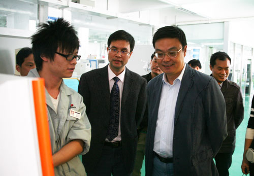 省教育工委副书记李鲁视察我院精密模具实训基地,并与企业员工亲切交谈