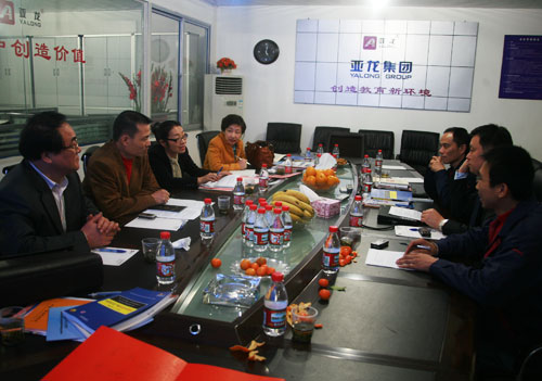 随后,王向红副院长与科技开发处长南秀蓉,电子系主任陈大路、副主任苏绍兴等就校企业双方合作成立电子技术产品联合研发基地事宜和亚龙集团总经理陈传周及相关负责人进行洽谈。王向红副院长说,亚龙集团和温州职业技术学院在全国职教界都享有很高的知名度,双方要合作就要力争把工作做实,要把牌子在全国打响,成为校企合作的示范。