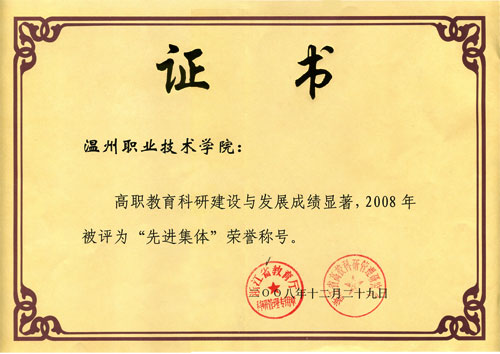 在浙江省高校科研管理研究会高职分会第八届年会上我院被评为第二届高校科研管理研究会高职分会“科研管理工作先进集体”,王向红副院长获得“特别贡献奖”,南秀蓉处长获得“优秀科研管理者”称号,陈莉敏获得“优秀科研工作者”称号。另外,我院还被温州市社科联评为2008年度社科工作先进集体。