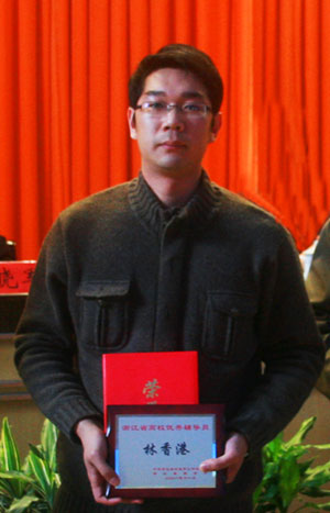 省级优秀辅导员——工商系林香港老师 日前,浙江省教育厅发文表彰了2008年度省级优秀思政辅导员,我院工商系辅导员林香港老师榜上有名。