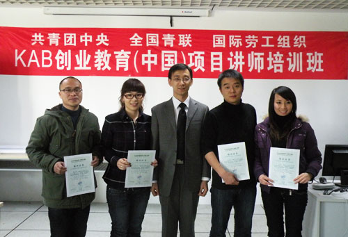 为进一步推动我院大学生创业教育工作、提高大学生职业素质,结合示范建设方案要求,我院拟引入KAB创业教育培训以丰富创业课程体系建设。为此,学院派蔡后界、吴冰、白洪兴、王品等四位教师于近日参加了在中央财经大学举办的KAB讲师培训班,并获得了共青团中央、全国青联和国际劳工组织北京局共同认证的KAB创业教育(中国)项目讲师培训班合格证书。本期培训班共有来自全国14所高校的29名教师学员。