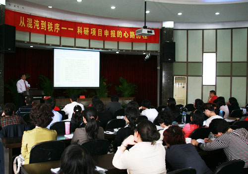 4月15日下午,我院工商系祝宝江教授在一楼多功能厅开坛设讲,以《从混沌到秩序》为题讲述了自己在申报科研课题过程中的心路历程,向从事人文社科研究教师传授了科研课题申报“秘籍”。讲座由我院科技处与工商管理系牵头举办,我院人文系、工商管理系、财会系、轻工系、公共教学部、计财处等100多名教师听取了讲座。