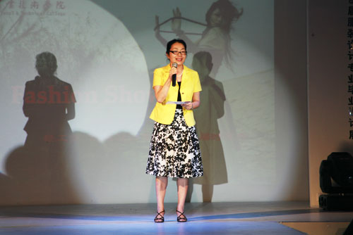 服装秀(3) “我的作品将60年代的太空风格和80年代的性至上主义结合起来,服饰风格将趋向简朴。以正方形与三角形等几何图案设计成的服装成了未来主义风格服饰的先驱。在毕业前,我将这个作品的灵感献给母校。”毕业前该留下什么?6月12日晚,我院服装专业学生用一场精彩的毕业生服装作品秀暨时装发布会来回答了这个问题,他们以“毕业作品秀”的形式在离校前夕向母校汇报成绩,为自己三年的大学生活划上完美的句号。秀场还吸引了拜丽德、婉甸等50多家温州服装企业的目光来“吸收”学生创作灵感。学院党委副书记倪集崇,副院长王向红,纪委书记何忠,党委委员、宣传部部长朱金荣到场观看了表演。