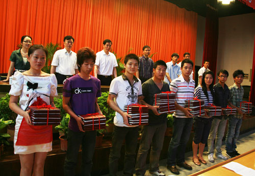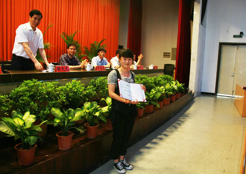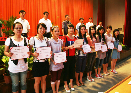 院党委副书记倪集崇宣读了2008学年国家奖学金获得者、省级优秀毕业生名单。院领导们一一为优秀毕业生颁发了荣誉证书。在欢快的乐曲声中,毕业生们手持证书,愉快合影留念。在每一位毕业生内心都感受到无比的喜悦、幸福与庄严。