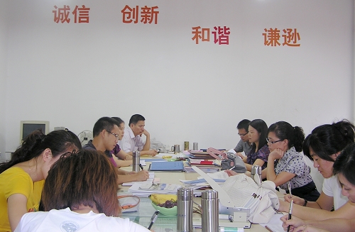 思政课老师分组开展集体备课 9月17日下午,我院在公共教学部会议室里召开新学期思想政治理论课集体备课座谈会。与会的有我院党委副书记倪集崇、宣传部长朱金荣、社科教研室全体教师和来自各系的思政辅导员。座谈会由公共教学部主任赵岳峰主持。