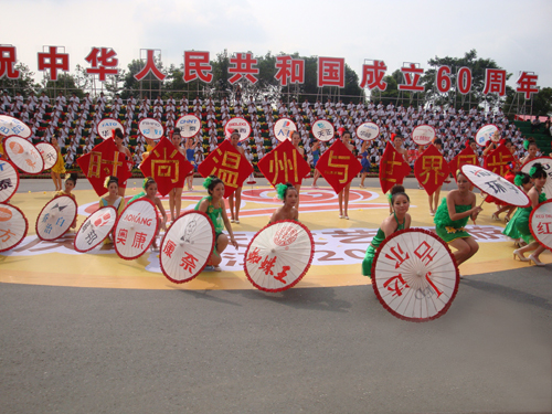 金风送爽,金桂飘香,祖国迎来她的60华诞。为庆祝新中国成立60周年,9月26日上午,由省委宣传部主办、杭州市委宣传部承办的浙江省庆祝新中国成立60周年大型文艺巡游活动在钱塘江畔的之江路隆重上演,由我院49名学生表演的《温州名品时尚秀》作为我市选送的三个节目中的主打节目参与了大型巡演。温州市领导赵一德、包哲东、曹国旗、陈笑华等出席了此次60周年庆祝活动。
