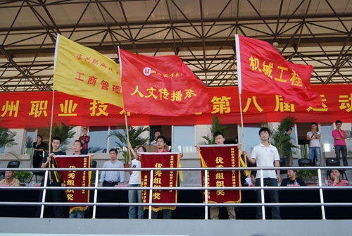 本届运动会充分发扬了“更高、更快、更强”的奥运精神,展现了同学们“积极进取、团结奋进”的精神风貌,也创造了骄人的运动成绩,共有11人次刷新学院10项田径运动会的纪录,同时还涌现出多个先进集体、先进个人:成教学院、工商系、建工系、计算机系、财会系、人文传播系等代表队获得本届运动会团体总分前六名,人文传播系、机械系和工商系获得最佳组织奖,有 17位同学获得优秀学生裁判员称号。