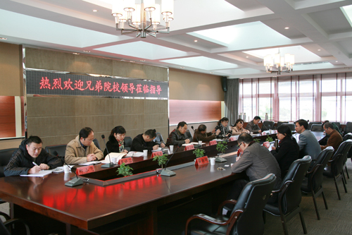我院院长丁金昌热情地接待了客人们。在座谈会上,双方就高职教育的理念展开了交流和探讨,丁院长提出了关于高职教育可持续发展的几点思考:第一、要强化区域性;第二、要突出实践性;第三、要体现高教性。