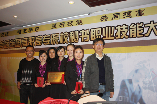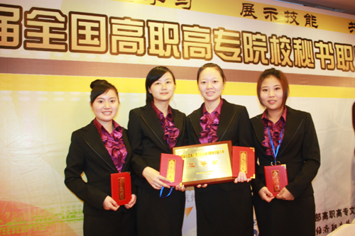 2009首届全国高职高专院校秘书职业技能大赛于11月29日在杭州落下帷幕。我院文秘专业学生取得了团体三等奖的优异成绩,参赛的四名选手全部获奖,其中朱琛同学获得二等奖,赵侠依、张晓红和马冯艳三位同学获得三等奖。