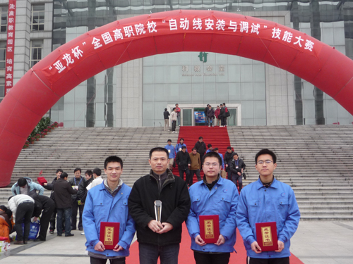 在12月25日—27日举行的2009年“亚龙杯”全国高职院校“自动线安装与调试”技能大赛中,我院由电气电子工程系蔡健、潘胜江、林颖和陈荣荣等四位同学组成的代表队在苏绍兴副主任的带领下,获得竞赛团体二等奖。