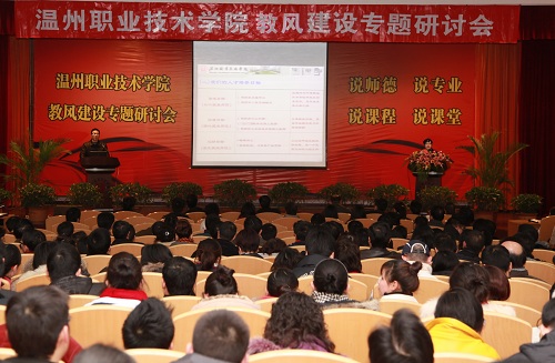 会议开始,王向红副院长就指出,经过10年的高速发展,中国高职教育已经呈现出一幅“百舸争流、千帆竞渡”的壮丽画面。2009年,是我院示范建设的攻坚年,也是我院推进教风学风建设工作年。作为一所国家示范性高职院校,我们不仅要做“发展的模范、改革的模范、管理的模范”,还要在教风建设方面努力成为全国的示范。本次教风建设专题研讨会目的就是提供大家一个相互交流、相互探讨,共同提升学院教风建设内涵的机会。