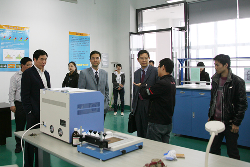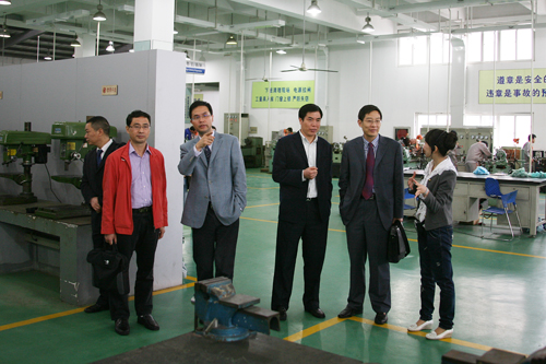 5月14日,重庆工贸职业技术学院党委书记马传松一行11人来我院就进一步深化双方合作的具体事项考察调研。院党委书记陈光天和院长丁金昌热情地接待了客人。双方在座谈会上展开了深入的探讨和交流。会后,陈光天书记和丁金昌院长还陪同客人们参观了学院的生产性实训基地。