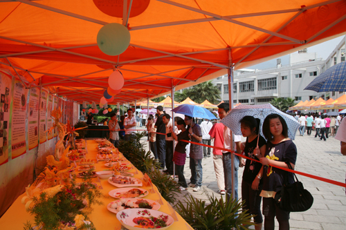 这次举办美食节,也是各家餐饮的大比拼,学院饮服中心、八斗粮、美味系等各自都拿出了自己的看家本领,雕刻、拼盘、品牌菜、小吃、糕点等多种形式全面展示他们的精湛手艺。此外,还开展了一场场别开生面的师生厨艺比赛、摄影比赛等各类娱乐项目,如师生自己动手包饺子、烧美食、自制蛋糕、猜灯谜和吃饺子比赛,冷饮、点心、零食等展销商各自也推出了自己的营销手段,不断展出特色,吸引师生眼球。四方公司现场还对美食展示作品、摄影作品以及对本次活动给予极大帮助和支持的一些参展商进行了颁奖,现场气氛达到了高潮。