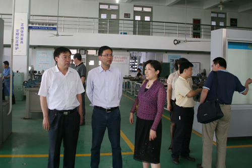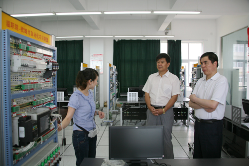 丁金昌院长陪同来宾参观实训基地 5月31日,新疆和田教育学院党委书记李忠一行和山东工业职业学院朱怀忠院长带队的考察团来我院参观访问。我院陈光天书记和丁金昌院长对客人们的到来表示欢迎,并分别与来宾进行了深入的座谈交流。会后,客人们参观了我院校内生产性实训基地。