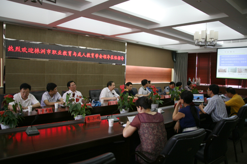 6月22日上午,株洲市职业教育与成人教育学会考察团来我院参观访问2