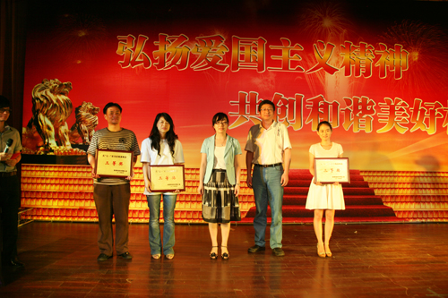 院领导为获奖部门颁奖 6月29日下午,我院庆“七一”纪念大会暨红色经典文艺汇演隆重举行。作为庆祝建党89周年的贺礼,全院教职工以“弘扬爱国主义精神,共创和谐美好校园”为主题,献上了对党的祝福与礼赞。院领导陈光天、倪集崇、兰玉景、王向红、何忠、朱金荣、陈维彬、徐利群等出席大会。大会由党委副书记倪集崇主持。