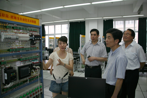 仇杨均副市长一行视察了我院的校内生产性实训基地,并与我院领导陈光天、丁金昌、倪集崇、夏晓军、兰玉景、王向红、何忠等进行了座谈。