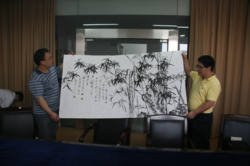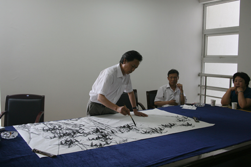 合影留念 2010年7月19日,著名书画家杨茂东先生来我院参观访问,指导我院校园文化建设,并现场泼墨挥毫。兰玉景副院长热情地接待了杨茂东先生。