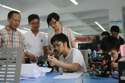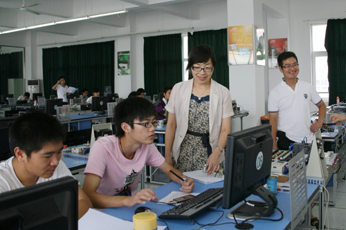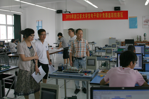 8月19日,2010年浙江省大学生电子设计竞赛温职院赛区的比赛在我院拉开了序幕。温职院副院长王向红亲临现场,看望参赛的同学们。