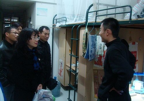2010年12月15日风雪夜,学院机关第四党支部在院党委委员、副院长王向红,党支部书记、教务处副处长唐高平的带领下,与机械工程系党总支书记黄加銮、教师党员梅碎彬、谷贤慧一同走访了“三联系”对象的10个寝室、10位同学。王向红副院长一行与学生开展了亲切的交流,详细询问了学生生活、学习、工作上的情况,并对学生思想动态进行把握和分析,鼓励他们树立信心、好好学习、从小事做起、从身边做起,真正成为“厚德长技”的高素质人才。