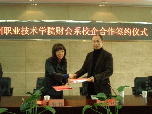 仪式上,财会系与瑞安中盛会计代理事务所就建立温州职业技术学院校外实训基地和会计代理事务所进驻学校等相关事宜达成了协议。瑞安中盛会计代理事务所目前已为100多家企业代理记账,协议签订后,将保证至少有20家企业的账进驻学院,每月派会计人员1-2人次来学院指导学生的会计实践,财会系也将选派教师到该所从事财务工作。同时,择优选取一部分学生在实训教师和中盛会计代理事务所的指导下完成代理企业的账务处理、纳税申报等财务工作。
