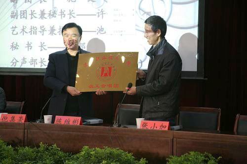 随后,保卫处处长赵清弟宣布温职院教工合唱团正式成立,倪集崇副书记为合唱团授牌。