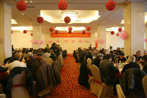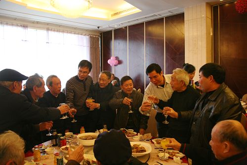 陈书记和丁院长向老同志们敬酒 1月7日,我院2011年离退休老同志新春团拜会在溢香厅大酒店隆重举行。学院党委成员陈光天、丁金昌、倪集崇、夏晓军、兰玉景、王向红、何忠、朱金荣、陈维彬、徐利群等和学院离退休教职工欢聚一堂,喜迎新年。团拜会由倪集崇副书记主持。