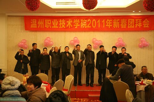 团拜会现场张灯结彩,花团锦簇,一派喜气洋洋的景象,党委书记陈光天代表学院党委向离退休老同志致以新年的美好祝福和问候。陈书记充分肯定了离退休老同志在学院历年建设中所做的贡献,并简要介绍了学院2010年主要工作情况和2011年的工作思路。最后祝老同志新年快乐,身体健康,全家幸福。