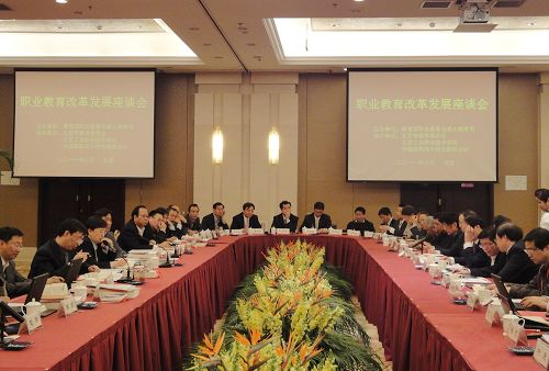 丁金昌院长发表讲话 3月11日,教育部副部长鲁昕在北京召开全国职业教育改革发展座谈会,会议由教育部职业教育与成人教育司司长葛道凯主持,全国各省(市)教育厅、各行业协会、教育专家、高职院校领导36名代表应邀参加会议。