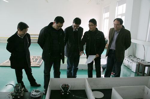 顾处长一行观看电气系毕业生设计的机器人表演