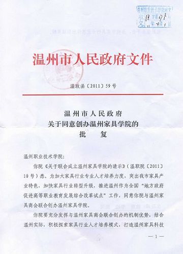 近日,我院与温州家具商会联合创办校行合作学院的申请获温州市政府批准,“温州家具学院”正式挂牌成立。“温州家具学院”是温职院在以“政府主导、学校主体、行业指导、企业参与”为指导下强化校行合作的一次新尝试,是学院创新校企合作新模式的一次探索,更是学院改革办学体制和育人机制的一次重大突破。